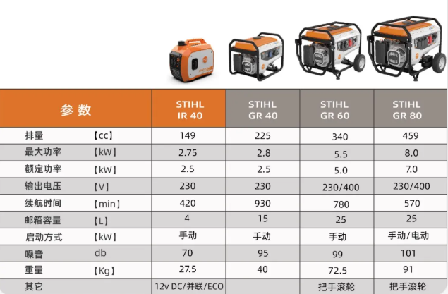 STIHL 发电机参数一览表